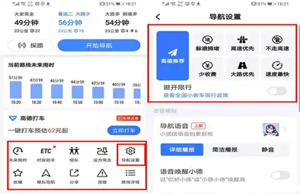 高德地图在设置导航的时候会默认用户们走高速,对于那些不想走高速的车主来说,我们可以在设置中关闭高速的推荐,这样就可以避免高速情况了。