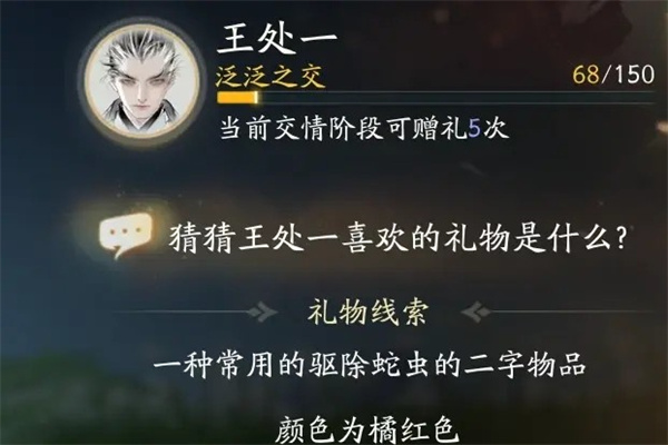 射雕王处一喜欢礼物介绍
