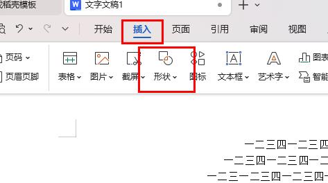 1、首先点击插入,然后点击形状。
