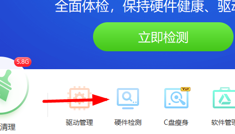 2、在首页中点击“硬件检测”功能,同时还有许多功能会在其中出现,