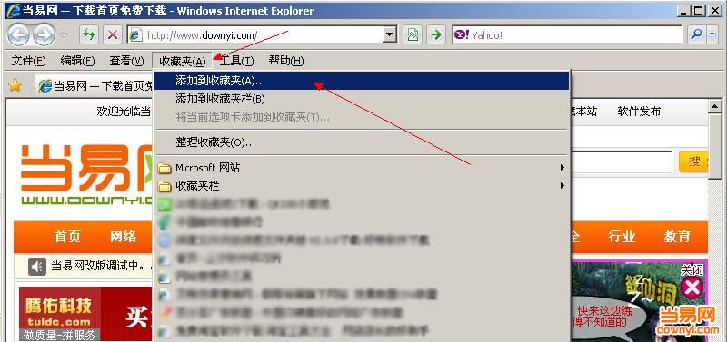 这里以IE8为例进行说明,其它的浏览器操作基本相同。单击浏览器的“收藏夹”菜单,然后从下拉菜单中找到“添加到收藏夹”。