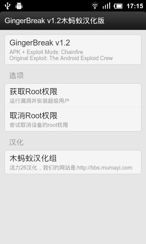 gingerbreak木蚂蚁一款非常强大的手机root软件,软件能够帮助安卓手机进行权限的root,让手机能够拥有更多的权限。root后的安卓机能够卸载更多手机中没有用处的软件,同时也能够下载更多有意思的软件。能够修改手机里面的一些原本锁定的数据,让手机变得更加好用,有需要的用户欢迎到当易网下载!