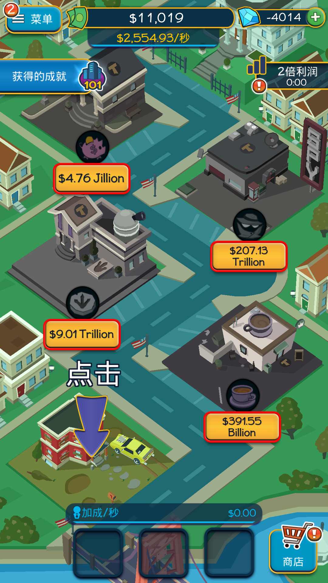 点点暴富中文版是款点击模拟手游,玩家在游戏之中只需要不停的点击就可以获得非常多金钱,扩大你的产业打造更多赚钱的商业街,让你的生意遍布地球,成为最有钱的富翁,欢迎大家到站内下载
