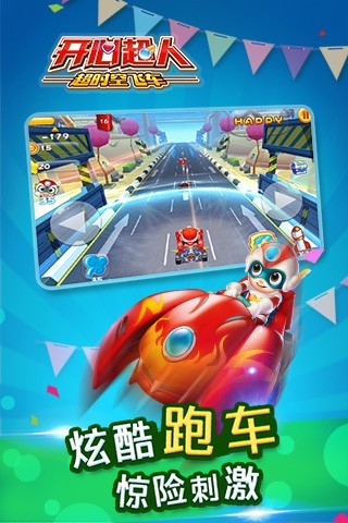 《开心超人超时空飞车修改游戏》——超人气火爆的机甲赛车游戏。超人气动画角色和酷炫的机甲,百分百还原!开心超人、甜心超人、小心超人等5位超人气角色,驾驶着宅博士新发明的强力战车,飞驰狂奔在赛道上!