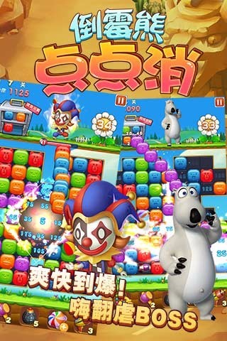 倒霉熊点点消是一款非常休闲好玩的益智消除类手机游戏,主角是大家非常喜欢的憨厚倒霉熊,游戏画面精致,关卡丰富,通过消除的方式获得高分并闯关,趣味性十足,喜欢的小伙伴快来体验吧。