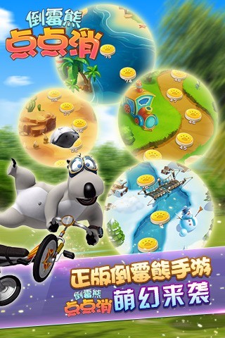 《倒霉熊点点消》是一款充满魔性的点消类休闲游戏。游戏获得倒霉熊正版授权,以原版动漫形象倾力打造的,特效华丽,画面清新绚丽,操作流畅,玩家只需快速寻找游戏中三个或者三个以上连接在一起的相同方块并点击它们,就可消除这些方块,多次连击可以使玩家获得更高的分数,玩家可以达到分数来通关、升级、解锁和获得多种道具。