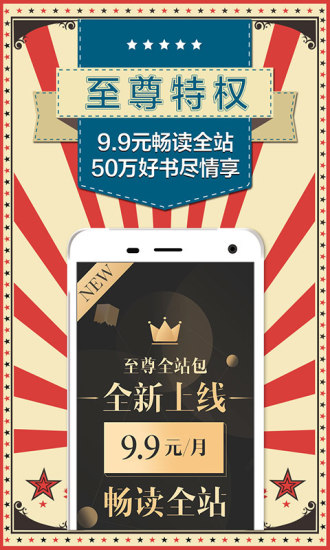 重磅推出至尊全站包,月付9块9畅读全站50万册