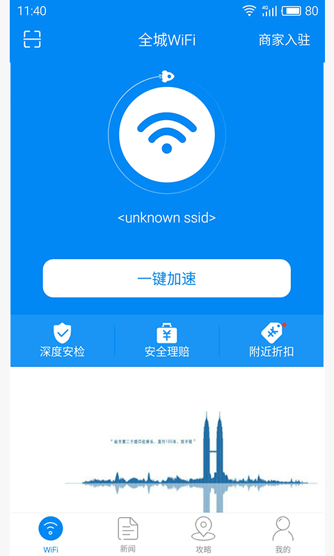 “全城Wi-Fi”提供WiFi安全监测、一键加速、信号增强等各种辅助功能。