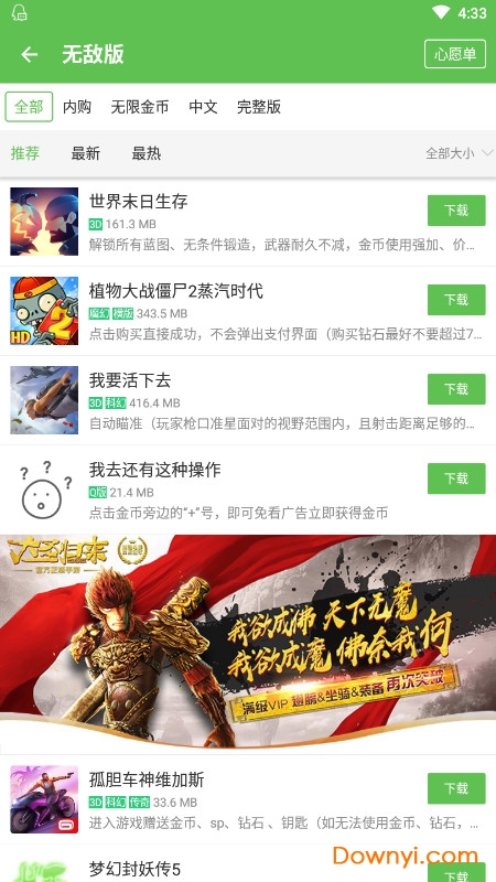虫虫游戏助手只玩精品。只为玩家提供超精品超好玩超新鲜超热门的游戏,拥有修改游戏、大型游戏、中文游戏三大特色板块,可以满足不同年龄段,不同群体对于游戏的需求,是手游玩家们的又一好去处。下载地址:http://www.downyi.com/downinfo/36937.html