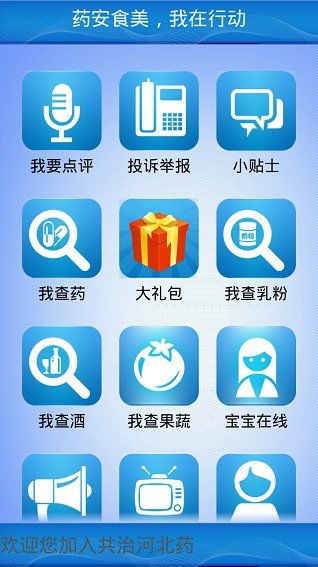 依托多年来积累的食品药品监管信息数据,整合了此前的“我查药”、“我查乳粉”、“我查酒”“我查果蔬”等功能,可查询药品、乳粉、酒类的相关信息及真伪,并增加了“我要投诉”、“投诉举报”、“宝宝在线”、“个人中心”、“检验报告”等版块。