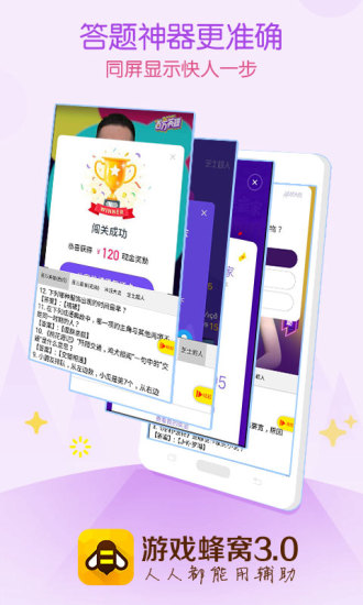 游戏蜂窝智囊团版本是游戏蜂窝为答题用户打造的全新版本,本软件可以与答题软件同屏显示答案,让你轻松通关,赢得奖金,本软件支持多个答题平台,包括芝士超人、西瓜视频、冲顶大会、花椒直播等,欢迎来体验软件。