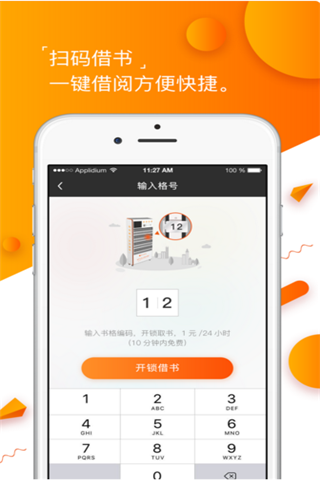 5、【扫码借书】一键扫码、输入格号开格,即刻取得图书,还书只需把图书放入空格,关锁即可,1元/24小时,轻松享阅,与图书零距离,触手可及。