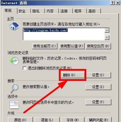1.首先我们来看看通过普通的方法删除历史记录,怎样查看这些被删除的记录。我们先打开ie浏览器。在internet选项中,点击【删除】