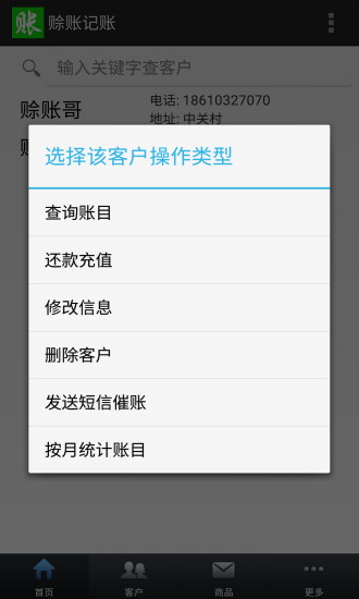 店长可记账顾客可查账的赊账记账软件,包含拍照记账功能,蓝牙打印机打印顾客账目清单的功能,客户查询往来账并确认账目等等功能。还可以额外做为手机通讯录的功能。防治手机通讯录丢失