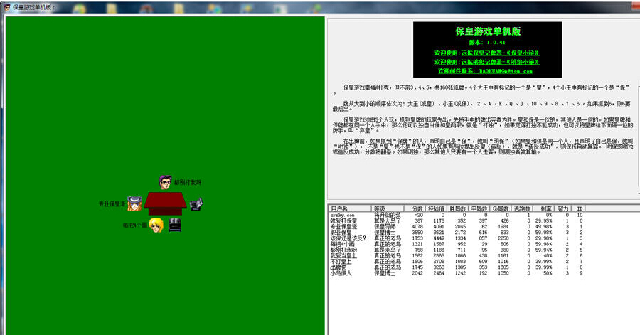 保皇是一款休闲益智游戏。起源于我国山东青岛,类似于够级而5个人玩,由 2 方玩家:保皇派(皇帝、侍卫)与革命党三人进行对抗,目的是 1 方成员尽可能早出完牌。 保皇最妙的乐趣在于皇帝不知道谁是侍卫、谁是革命党,革命党又不知道谁是卧底,于是,大家互相提防、猜忌,又要找出同党来帮助,霎时间流言四起、勾心斗角。