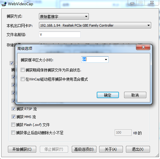 先设置好捕获的方式和你本机出口网卡,选择好录制后保存的位置,点击开始捕捉就可以捕获网页中的流媒体了