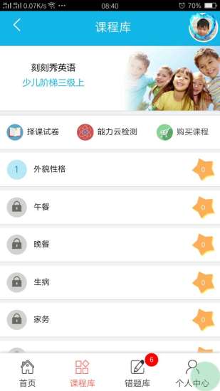 无论是智能手机还是平板电脑,无论是家中还是路上,随时随地想秀就秀。按小学英语课程标准(2011版)分为四级8个梯度,逐级进阶。纯正的美式发音,再也不用担心英语老师发音不标准。结合每个级别的能力云检测,只需10分钟,就可以从听、说、读、写四个方面测试出孩子的真实英语水平。