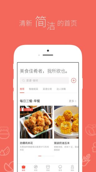 美食杰是一款专门致力于为美食爱好者们打造一个最全面优秀的平台而生的手机app,软件内富含海量的美食食谱,让您在家也能成为星级大厨,还有分享平台供客户相互交流心得,互相学习,快来体验使用吧!