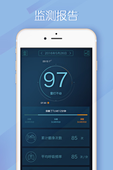 理想睡眠,应该是在8小时的睡眠周期里,暂时摆脱现代都市的急促生活与紧张压迫,让身体在睡眠过程中充分休息恢复,并将紧绷的神经得到舒展放松,让人以精神饱满的姿态,开启新的一天。非穿戴式睡眠监测,无须接触却能精准监测整夜的睡眠状态,图形化数据报告让你一目了然;内置眠音助眠技术,应用数字化异步音频变频技术,让你全身心地沉浸在自然放松当中,轻松进入8倍速高效恢复的黄金深睡眠;自我睡眠测评,简单几步便能及时掌握自身睡眠及健康状态,结合专家咨询,为你提供真正贴合需求的睡眠解决方案。