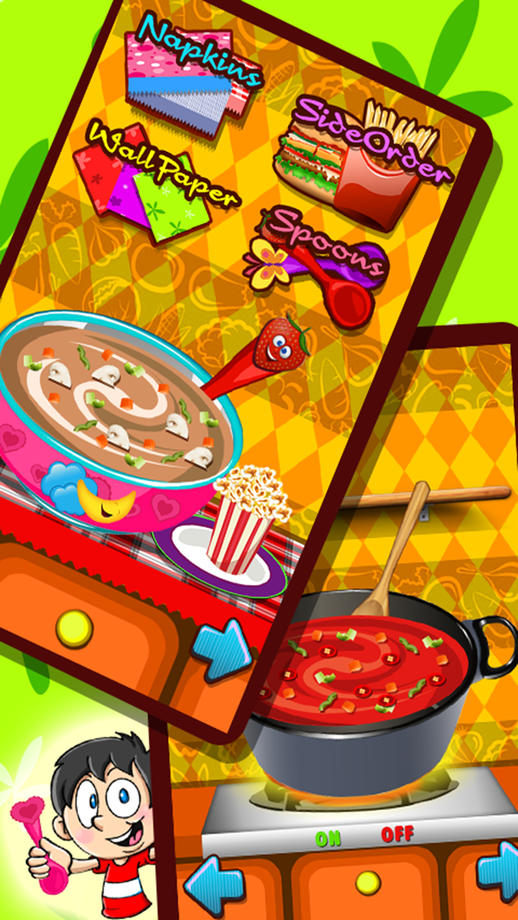 现在是时候用汤壶做出一些令人垂涎的热汤的烹饪游戏。给它一个尝试,学习如何制作美味健康自制的有机汤。孩子们特别喜欢这个游戏,因为女孩喜欢做饭和烧烤。