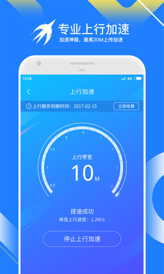 迅雷快鸟提升宽带带宽,让全网迅捷加速。平均带宽可提速3-5倍,支持中国主流主流运营商的家庭宽带账号。线路支持提速的家庭宽带,不支持政府、企业及校园网宽带。由迅雷专打造的一款手机网速提速神器。迅雷快鸟是迅雷与网络运营商合作推出的一项上网加速服务,技术原理为大幅提高用户现有物理带宽宽带,提升上网速度,让你在看视频、游戏、购物、下载等场景时享受畅快加速。