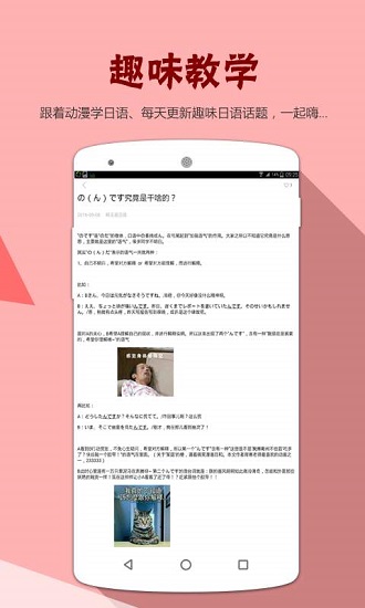 4.读日文,更新中日双语文章,配有插图,边学文化,边学日语。