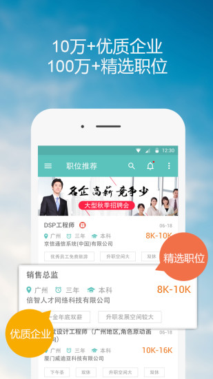 1、多维度职位搜索,准确找到高薪工作;
