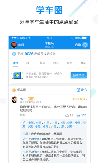 驾本易(学员端)是一款致力于在校大学生简单,快速考驾照的学车平台,在校大学生可以在上面选择教练,然后在平时练车时可以与教练商定时间,一切以学员为本,有需要的可以在当易网下载!
