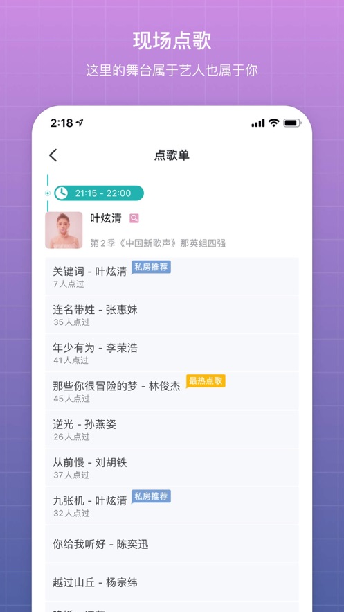 浏览演出安排,在线下单点歌送出祝福,动动手指,将现场变为自己的Party,享受专属的私人定制。
