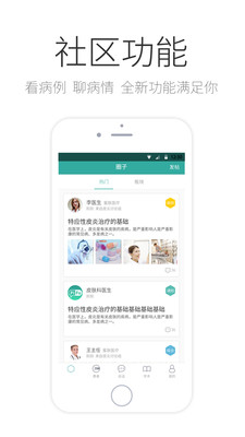 皮肤科医生手机版是一款专为皮肤病患者所研发的专家在线解答平台,全新社区功能满足你,看病例,和医生聊病情,还有热门精选抢先看,更能帮助和你一样的患者,获得回报,这是一款非常好的软件,欢迎大家到当易网下载!