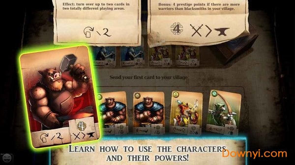 有六个不同的角色,每个角色都有不同的功能和力量。探索狼/侦察兵,山猫/商人,狐狸/吟游诗人,熊/战士,山羊/海员; 野猪/铁匠。发现每个角色的能力并使用它们来超越你的对手!