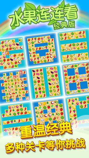 水果连连看经典版,好玩的快速简单消除游戏,没有之一;关卡设计与电脑经典版的连连看整体同步,并结合了手机平板设备做了完美的适配。