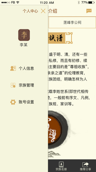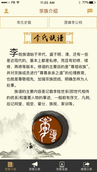 李氏族谱是一款专为李氏姓氏打造的资讯查询手机软件,李姓在中国是大姓估计现在已有差不多一亿人口,在这里不仅记录了李氏姓氏从古至今的名人事迹,还可查看每日更新的有关姓李人士的新闻消息,快来下载体验使用吧!