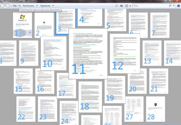Windows 7 中的 XPS 查看器功能已改进,是打开和管理 XPS 文档的配套工具。它具有全新的简化外观以及更便于您使用的搜索和浏览功能,其中包含全新的缩略图视图(可用于扫描长篇文档)。您可以对文档进行数字签名以验证其真实性,还可设置权限来限制哪些用户可以对该文档进行查看、复制、打印或签名。