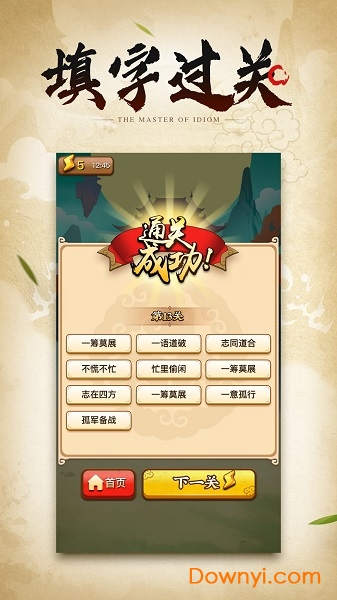 1、游戏当中去进行闯关的玩法,游戏的难度会去逐渐增加,去学习更多的成语知识;