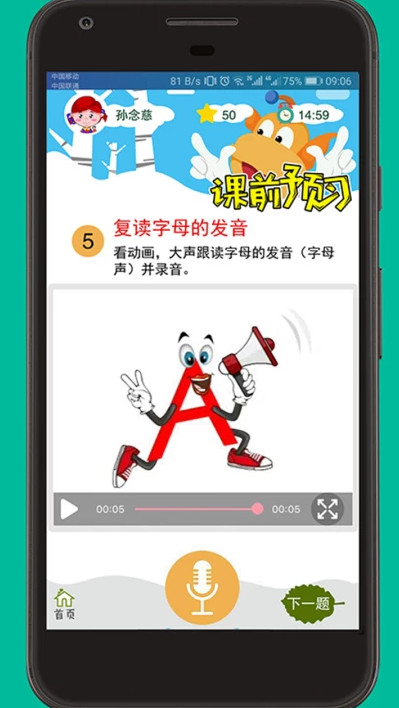 说基础聘请美籍专业教师进行教材内容的录制,发音清晰标准、语调地道;专业的语音测评系统,帮助孩子说得对、说得好。