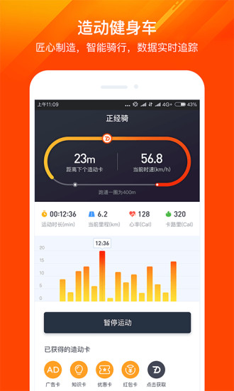 我们可以利用自己的时间进行碎片化运动,多场景投放,用户随时随地获得运动服务。打造一种全新的便捷、健康、智能的运动方式。全国首创共享健身车软件平台。丰富的运动指南经验分享,让你了解更多专业健身知识,帮你定制科学健康的生活方式。让运动随时随地。