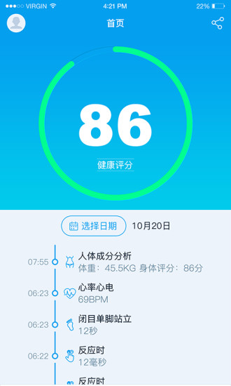 久康博士是一款配合久康人体体质分析仪来测量人体 63 项数据,心率心电,闭目单脚站立平衡时间等多种身体机能指数的应用。让大家更好的了解自己的身体。
