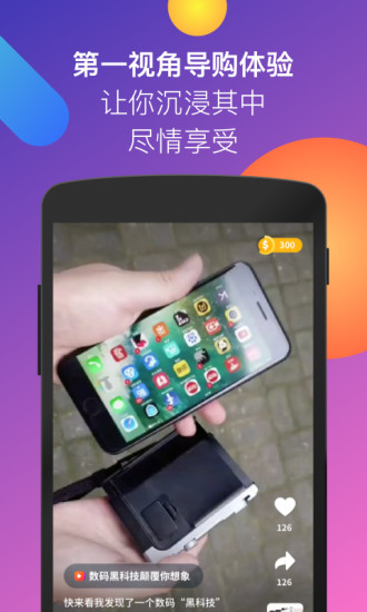 海量的个人视角购物体验视频,覆盖包括购物、娱乐、旅行、美食等生活的方方面面,让大家发现你所未见的、超越想象的全新商品和生活方式。