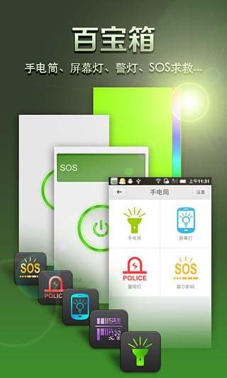 4、[丰富]贴心的手电筒功能,友好解决扫码光线不足问题,更多光源百宝箱,SOS紧急求救功能,为你的生活提供周到细致的服务。