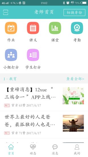 老师、学生、家长三种账号自由切换,通过日常课堂使用积累形成大数据,分析学生的学习行为成为学情分析,并同步到老师与家长的账号下,共同监督学习。