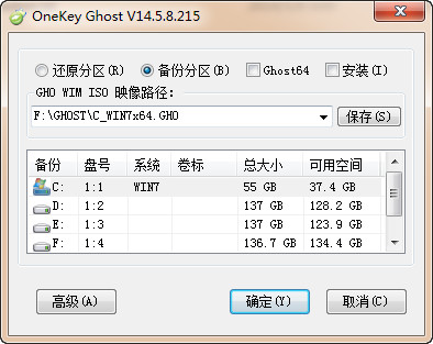 2、程序默认对当前系统所在分区进行备份、还原操作,可选择其他分区