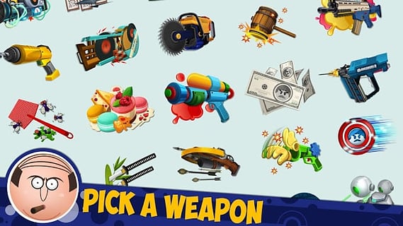 -玩家们手指随意点击屏幕,就能向老板丢出各种武器,
