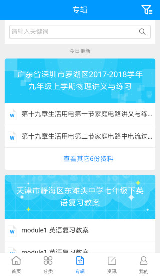 5、全新定制功能:用户可以设置学科、版本、年级,设置完毕后,系统智能地为你呈现本学科的资料和资讯;