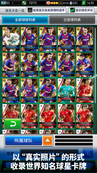 以真实球员照片的形式收录世界知名球星卡牌;