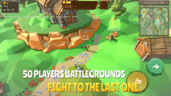 风格体验极佳,纯竞技无养成,玩家自由秀出华丽操作。全新的生存模式五十个玩家战斗到一个赢家,还可以邀请好友一起组队打BOSS。游戏超过15种皮肤,免费解锁。