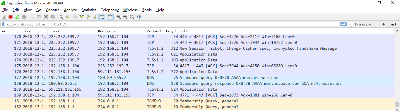Wireshakr抓包界面