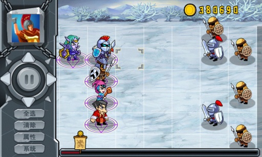 可以把他们组合成各种阵型。英雄通过战斗可以获得经验值,然后可以升级,得到更为强大的属性。每击败一个敌人会获得相应的金币奖励。只要有足够的金币就可以购买敌人的单位,变为已方队友进行战斗。游戏中包含各种各样的兵种,有普通及精英共计20余种。