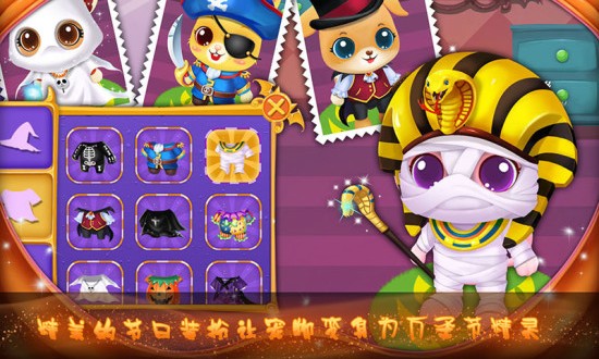 宠物万圣狂欢夜手游是一款好玩的益智手游,游戏画面清新可爱,你将带领可爱的小动物去参加有趣的万圣节,这里不仅有涂鸦、大头贴,还有刺激的鬼屋,深受很多玩家的喜爱,欢迎来体验!