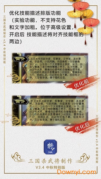 三国杀武将制作app是一款游戏辅助使用的工具,能够实现便捷的武将卡牌制作方式,享有多数据编辑以及详细的角色介绍亮点,使用查看具体信息就更加方便,设置主题内容清晰,运行流畅,欢迎来体验!
